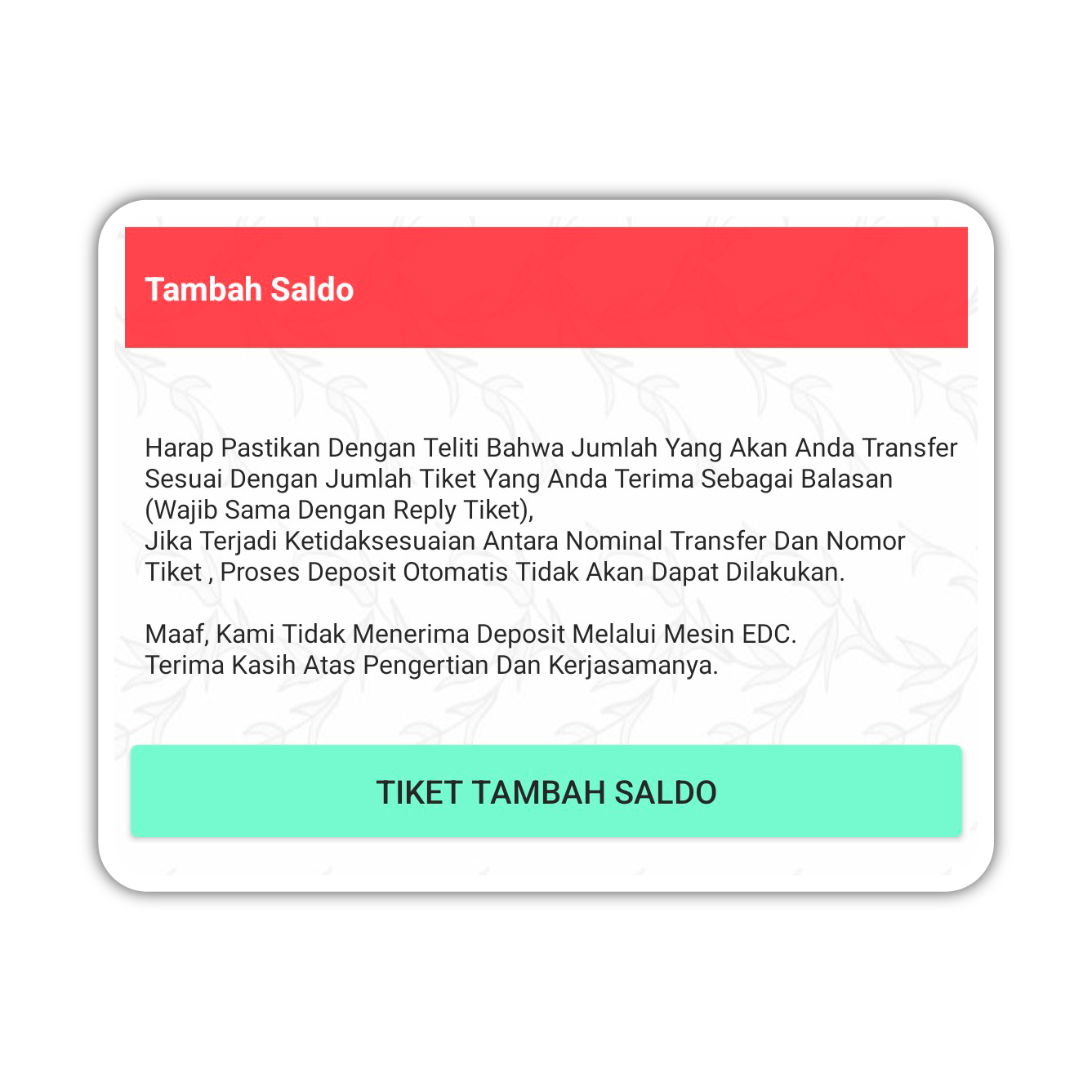 Klik Menu Tambah Saldo, lalu Klik TIket Tambah Saldo